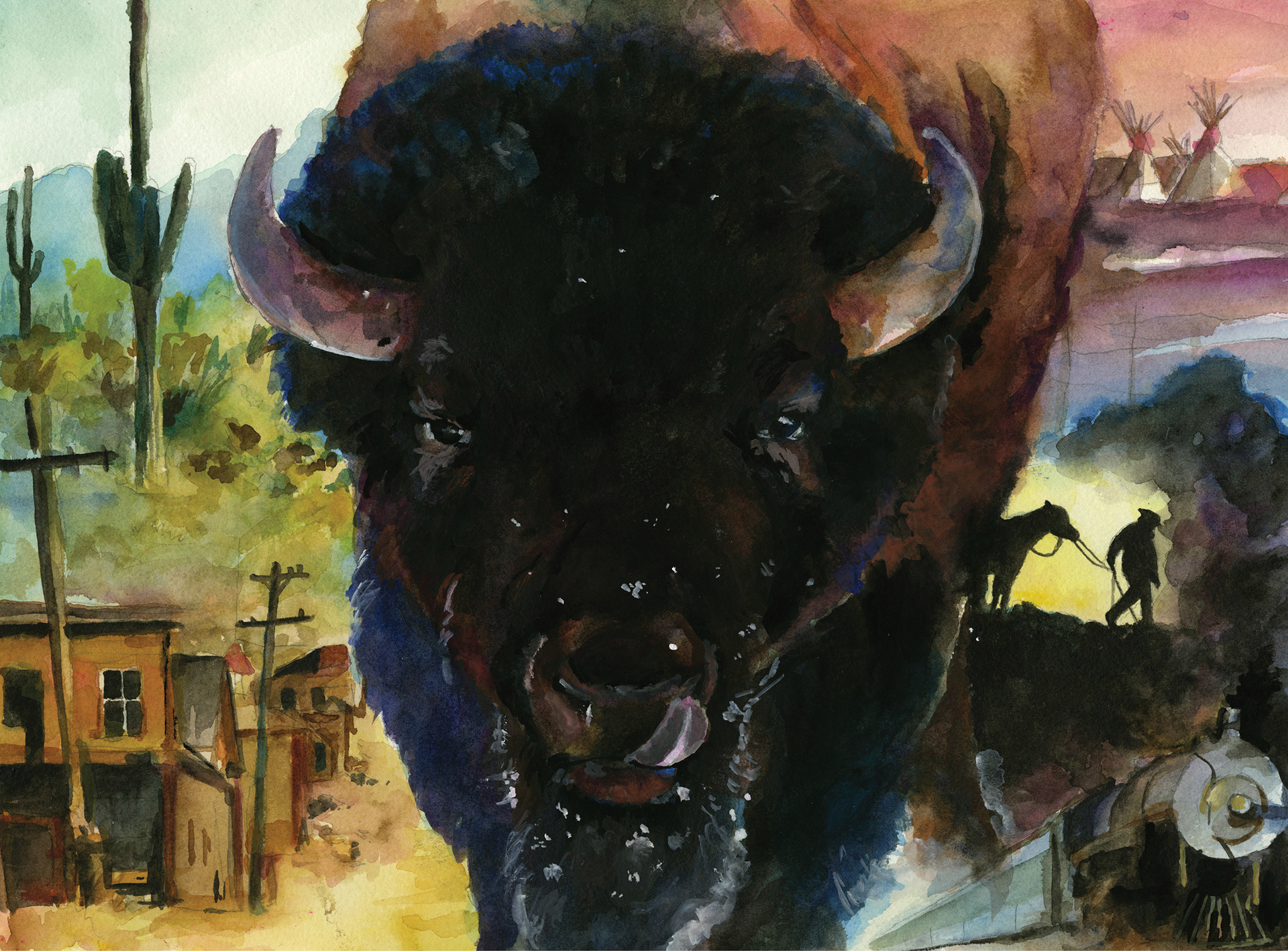 This was my final project for my watercolor class, with a history montage theme. Watercolor and Gouache.